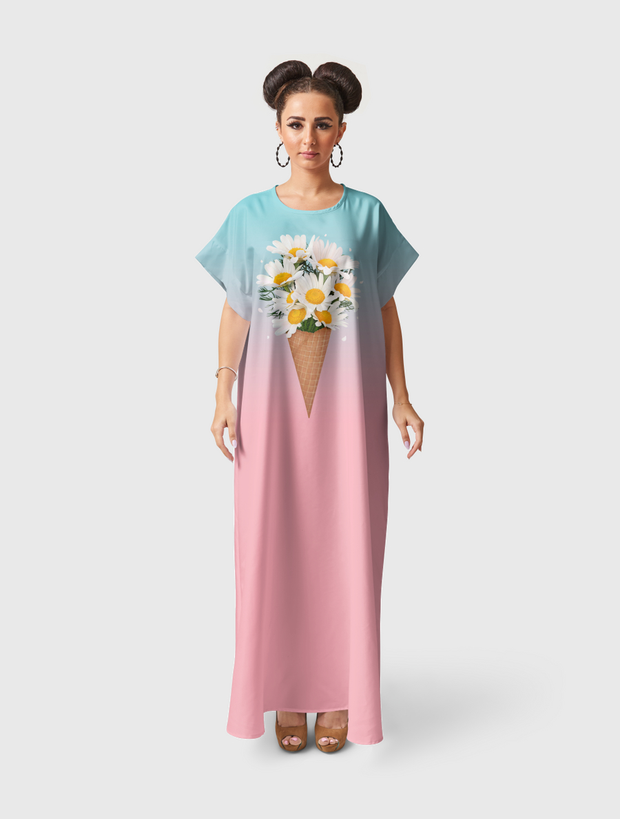 Flowy fit with a silky feel. Includes adjustable belt.