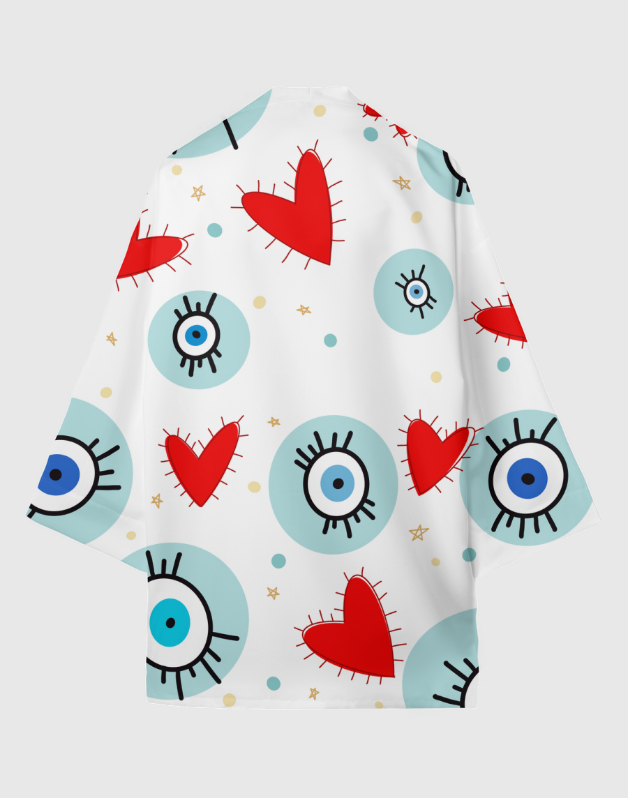 Eyes and hearts by AZRAQART - Long Sleeve Kimono