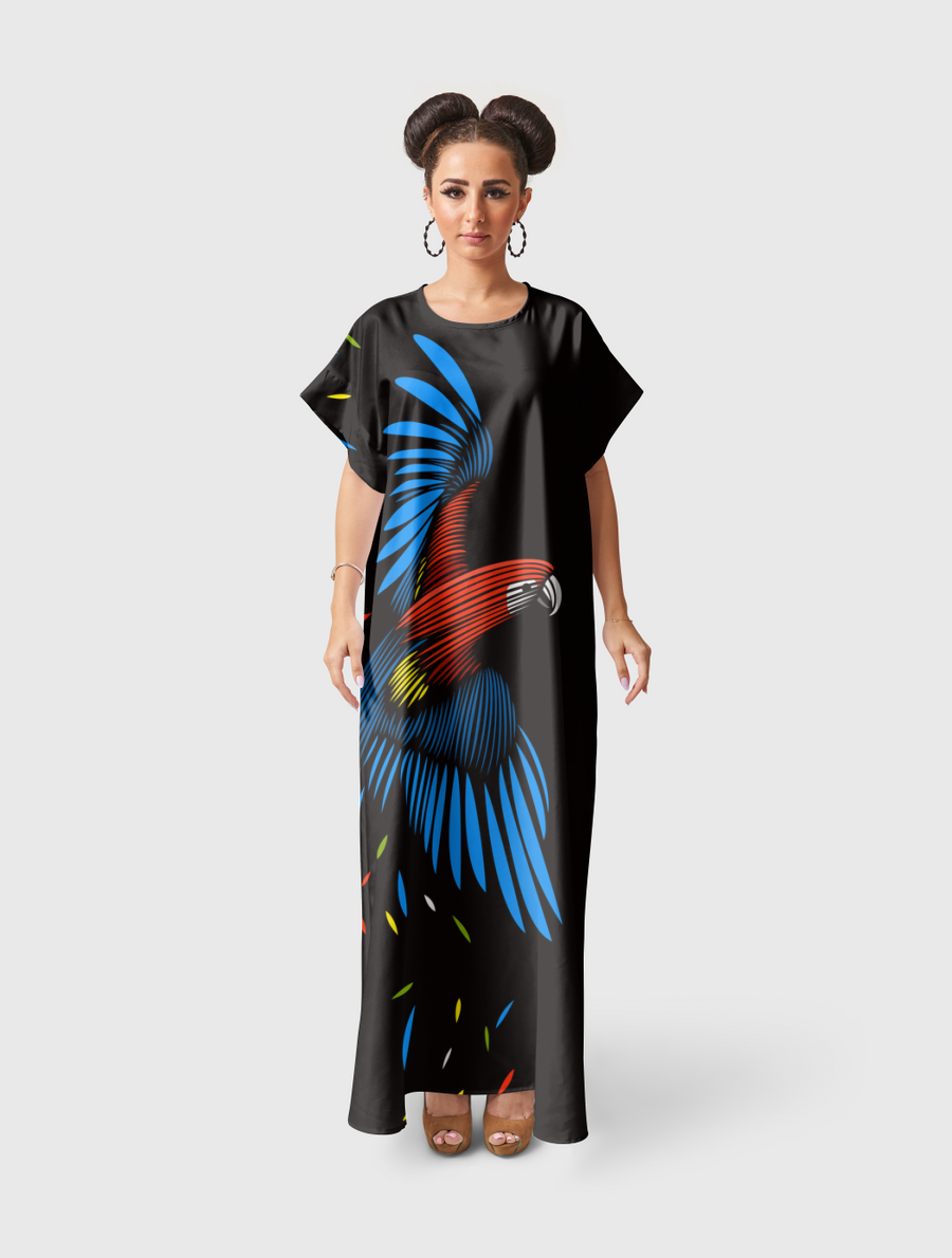 Flowy fit with a silky feel. Includes adjustable belt.