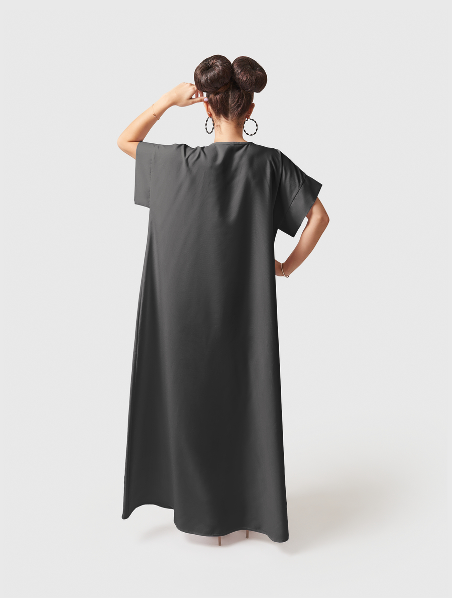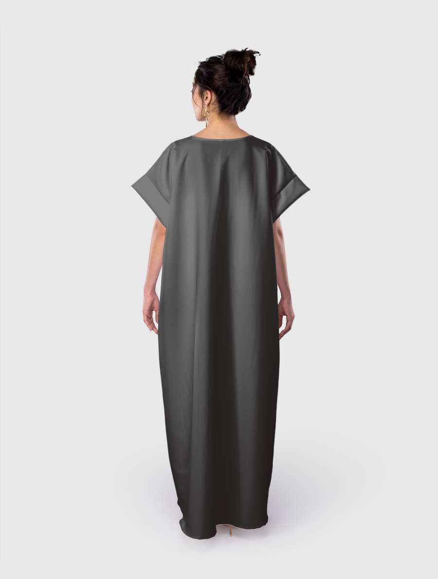 Flowy fit with a silky feel. Includes adjustable belt.