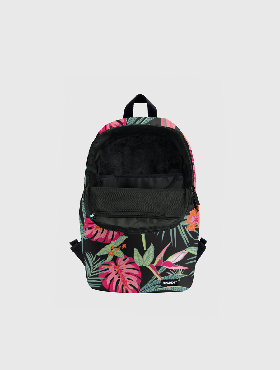 Handmade to order, this versatile backpack has a modern shape and a vivid front, top and side print.. Inside, a 15inch laptop compartment and mesh organizer. Outside, Side Zipper Pockets. Comes with "SPARK" engraved zipper tags.