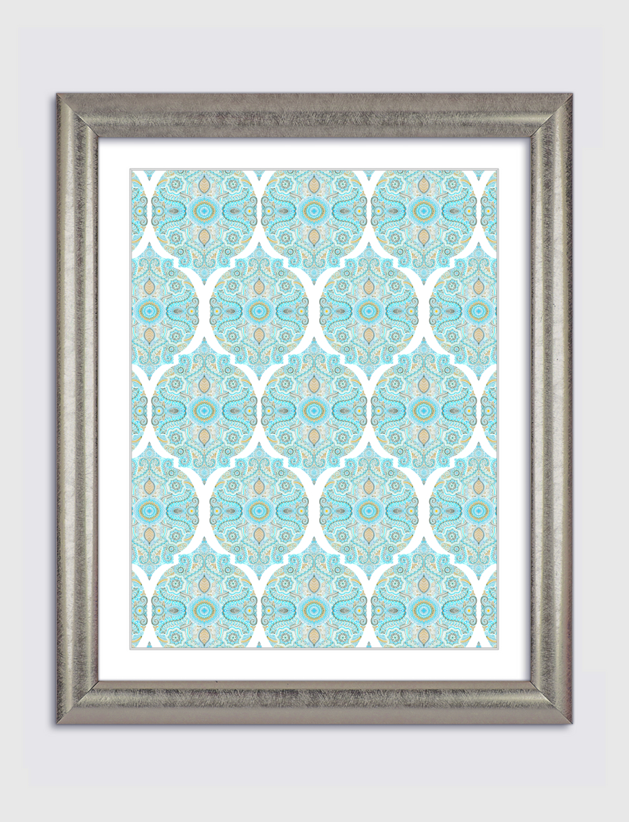 Aqua & Tan Doodle Pattern by Micklyn - Artframe