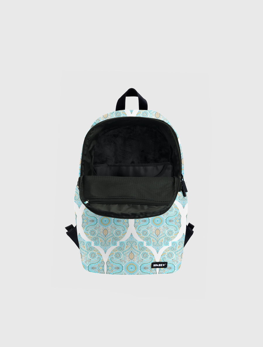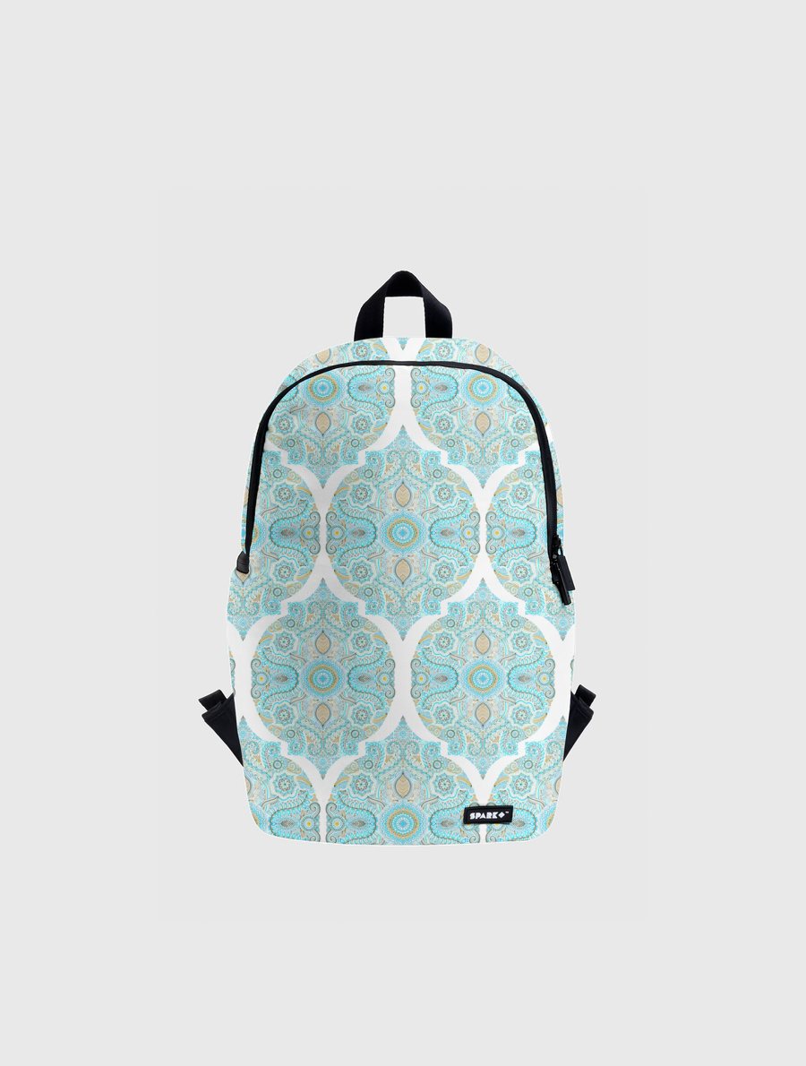 Handmade to order, this versatile backpack has a modern shape and a vivid front, top and side print.. Inside, a 15inch laptop compartment and mesh organizer. Outside, Side Zipper Pockets. Comes with "SPARK" engraved zipper tags.