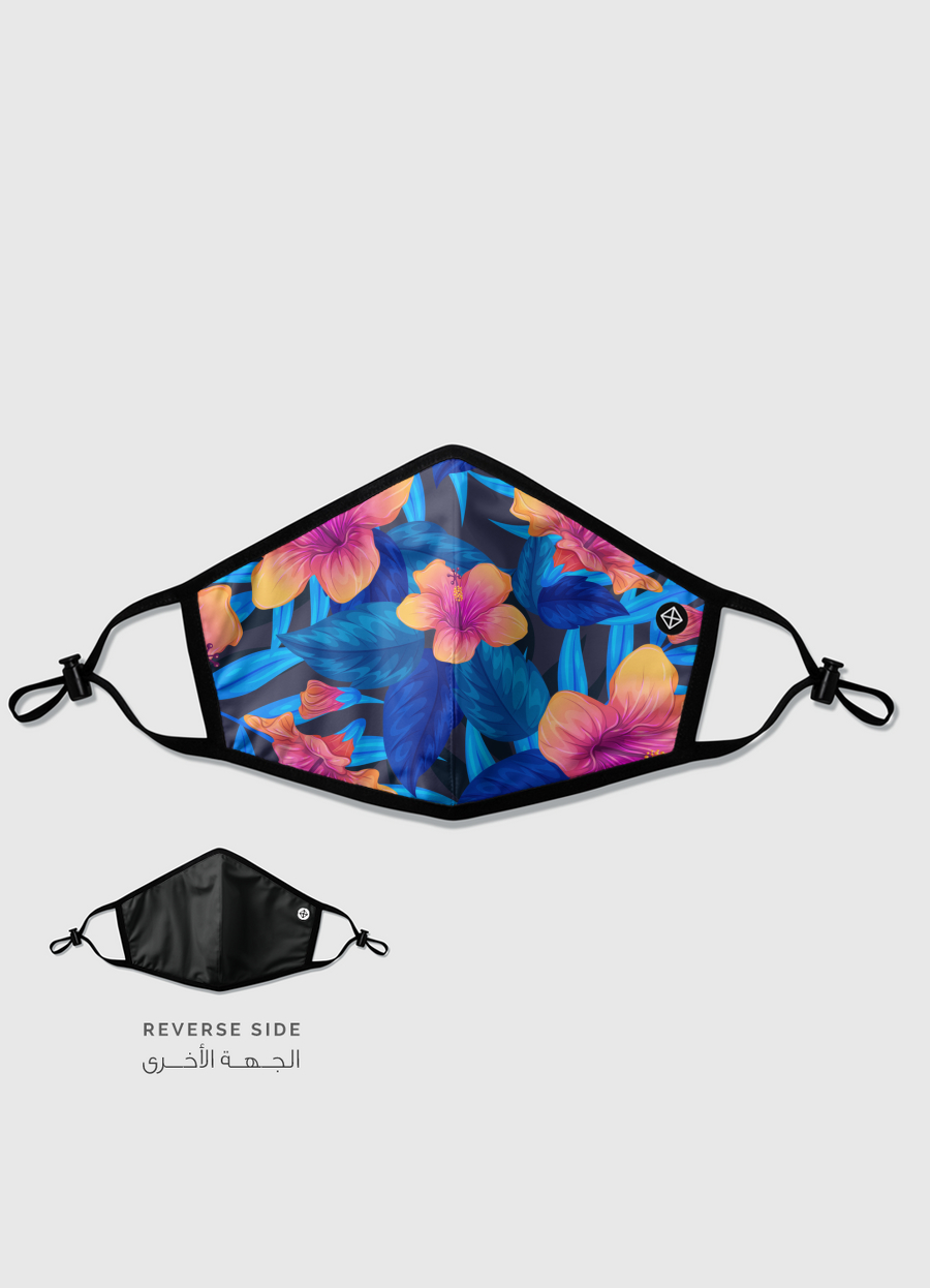 blue topical floral design by MyInaam - Reversible Mask