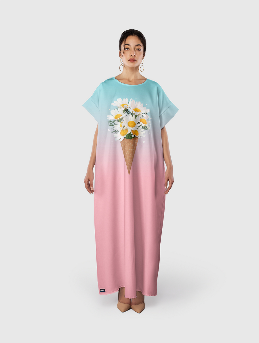 Flowy fit with a silky feel. Includes adjustable belt.
