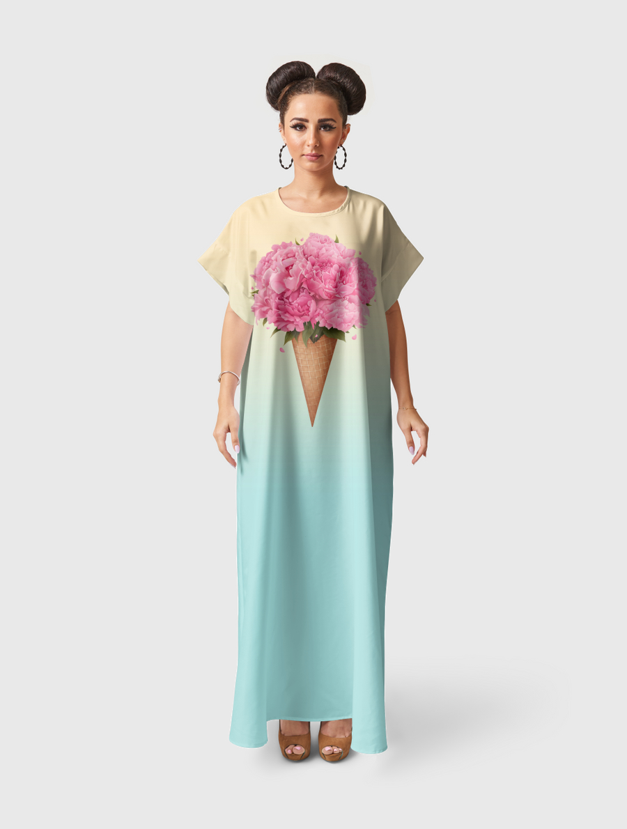 Flowy fit with a silky feel. Includes adjustable belt.