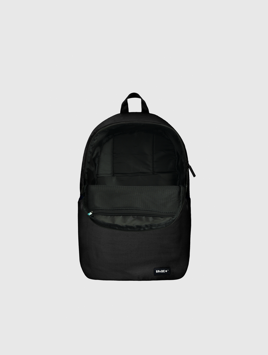 Handmade to order, this versatile backpack has a modern shape and a vivid front, top and side print.. Inside, a 15inch laptop compartment and mesh organizer. Outside, Side Zipper Pockets. Comes with "SPARK" engraved zipper tags.