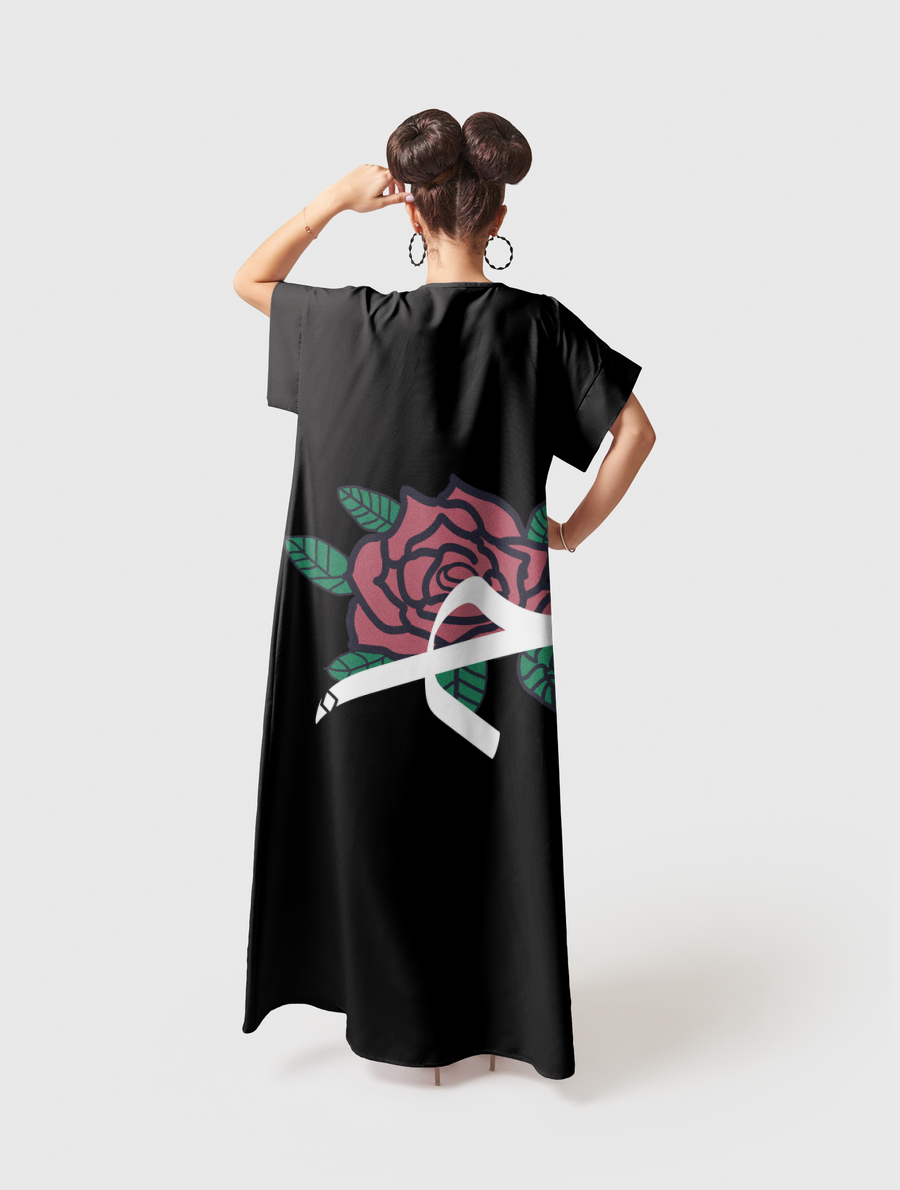Flowy fit with a silky feel. Includes adjustable belt.